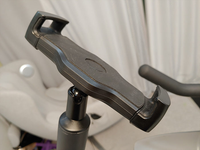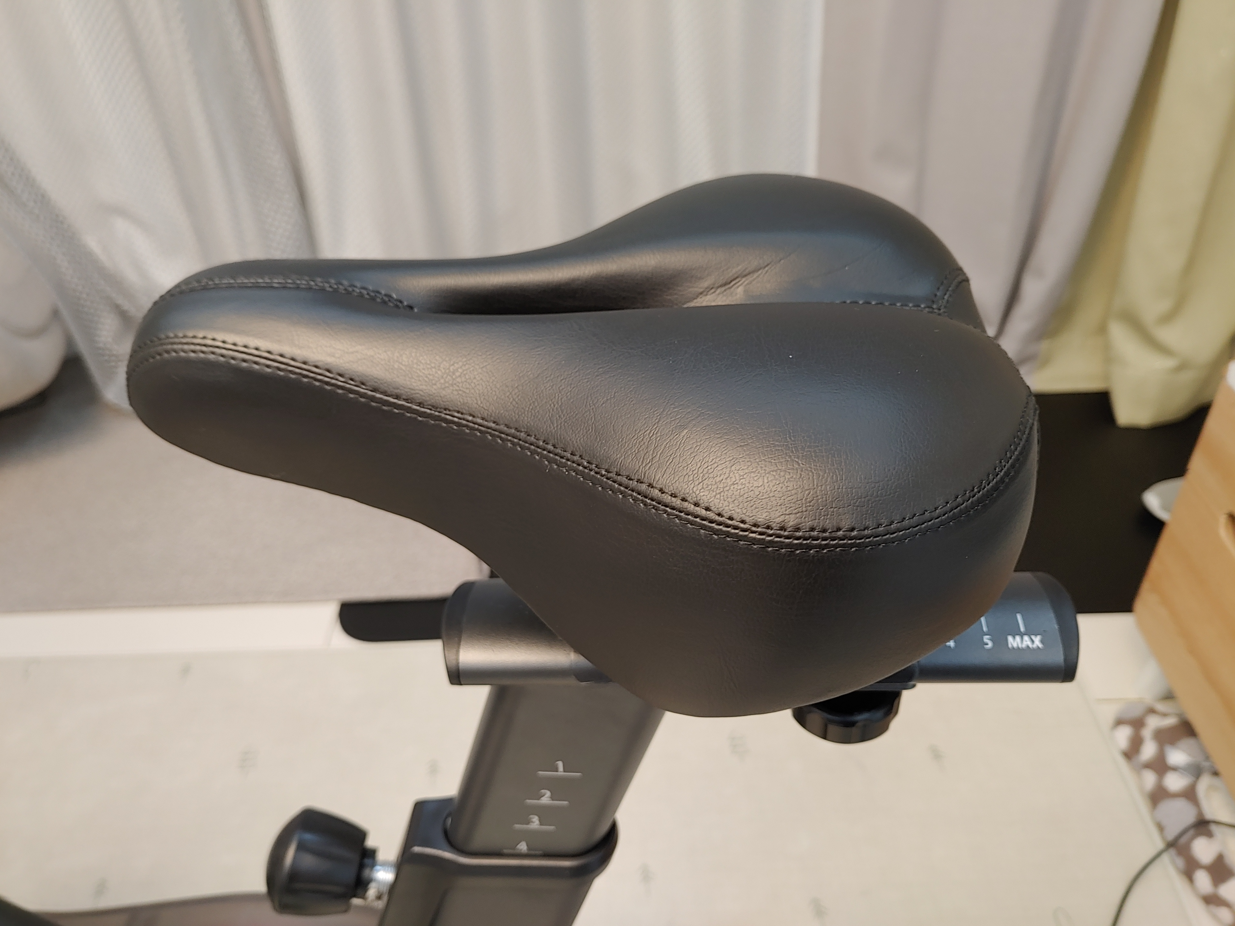 기본제공되는 안장은 프로페셔널하지는 않지만 메모리폼이 적용되어 푹신하고 아래쪽에 스프링이 장착되어 있습니다. 일반적인 실내 트레이닝에서는 매우 편안하며 따로 패드바지를 입을 필요는 없어 보입니다.