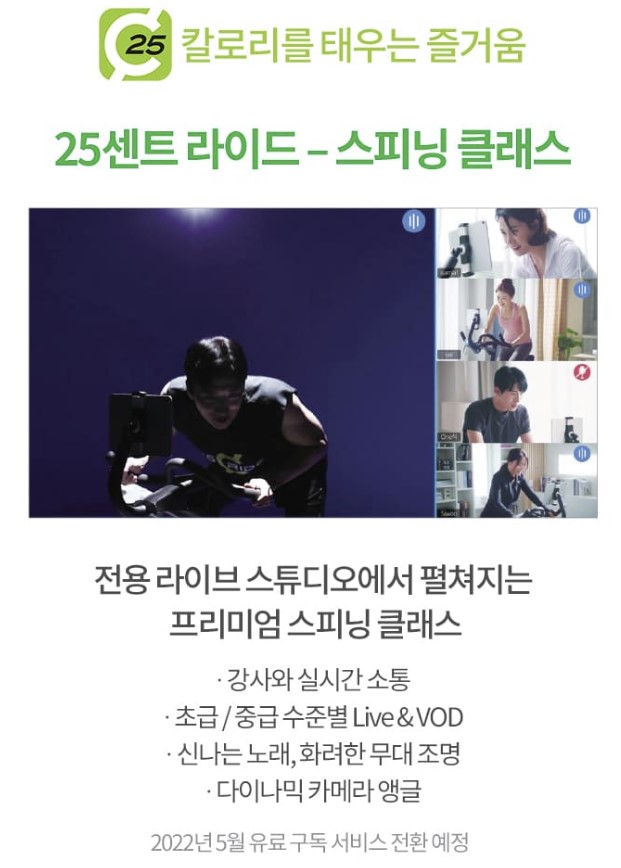 이 포스팅을 작성하고 있는 2022년1월 현재는 무료입니다만, 5월부터는 약간의 비용을 내는 유료 구독형이 된다고 합니다. 펠로톤이 월 39달러인 것을 생각해보면 그 정도의 비용까지 들지는 않을 것으로 보입니다.(유료가 되면 월 비용을 업데이트해보겠습니다) 저도 본사에서 제공하는 스피닝 체험 클래스를 한시간 들어봤는데요, 엄청난 운동효과와 즐거움이 한가득이었습니다. 인스타그램에서 #25센트라이드 라는 태그를 검색해보시면 라이딩, 스피닝을 즐기고 있는 여러 사용자들의 사진이나 동영상을 찾아볼 수 있습니다. 특히 스피닝은 엄청난 분들이 많이 계시더라구요.
