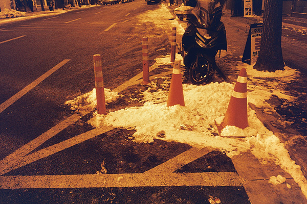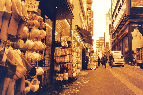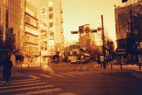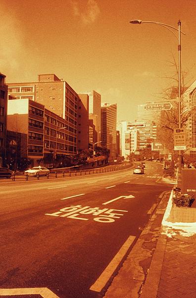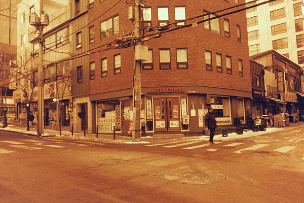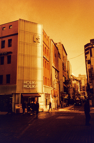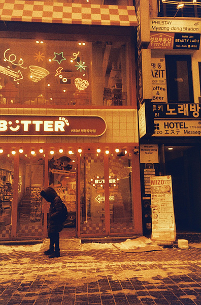 추운 날씨라 속사로 촬영하기 위해 리코 GR-1v 기종을 사용했고 명동과 충무로 일대를 순식간에 돌았습니다. 주광과 그늘, 실내, 인공조명 등을 골고루 촬영했지만 다 소용없고 꽤 레디시한 모노톤에 가까운 레드스케일 이미지들을 만들어 주었네요.